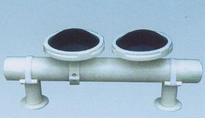 球冠形微孔曝氣器主要由曝氣膜片、支承托盤(pán)、螺旋壓蓋、螺紋接咀等部件組成,只要將橡膠膜片套在支承托盤(pán)上,用螺旋壓蓋擰緊即可。在安裝時(shí),再把支承托盤(pán)(中心有G3/4”內螺紋通氣道)裝于布氣管道頂部的螺紋接咀上。