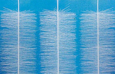 彈性立體填料篩選了聚烯烴類(lèi)和聚酰胺中的幾種耐腐、耐溫、耐老化的優(yōu)質(zhì)品種,混合以親水、吸附、抗熱氧等助劑,采用特殊的拉絲,絲條制毛工藝,將絲條穿插固著(zhù)在耐腐、高強度的中心繩上,由于選材和工藝配方精良,剛柔適度,使絲條呈立體均勻排列輻射狀態(tài),制成了懸掛式立體彈性填料的單體,填料在有效區域內能立體全方位均勻舒展滿(mǎn)布,使氣、水、生物膜得到充分混滲接觸交換,生物膜不僅能均勻的著(zhù)床在每一根絲條上,保持良好的活性和空隙可變性,而且能在運行過(guò)程中獲得愈來(lái)愈大的比表面積,又能進(jìn)行良好的新陳代謝,這一特征與現象是國內目前其他填料不可比擬的。