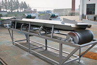 該輸送機主要由輸送帶、驅動(dòng)裝置、傳動(dòng)滾筒、托輥及機架等部件組成。